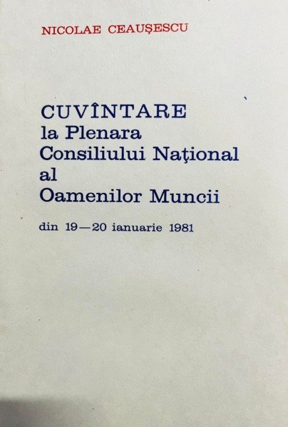 Cuvantare la Plenara Consiliului National al Oamenilor Muncii din 19-20 ianuarie 1981