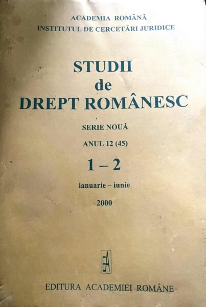 Studii de drept romanesc. Anul 12 (45), 1-2 ianuarie-iunie